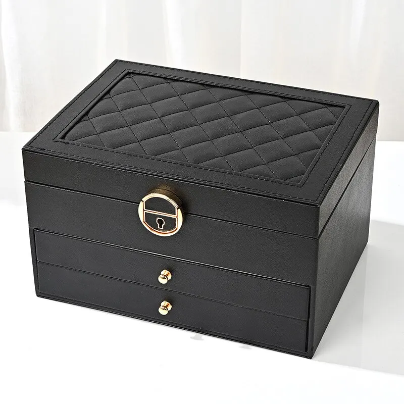 Dopřejte svým šperkům domov hodný jejich hodnoty díky této rafinované černé skříňce. Její čisté linie a minimalistický design dodají vašemu úložnému prostoru šmrnc a zároveň zachovají soukromí a diskrétnost vašich drahocenných předmětů.